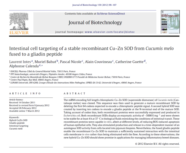 Intestinal cell targeting of a stable recombinant Cu–Zn SOD from Cucumis melo fused to a gliadin peptide