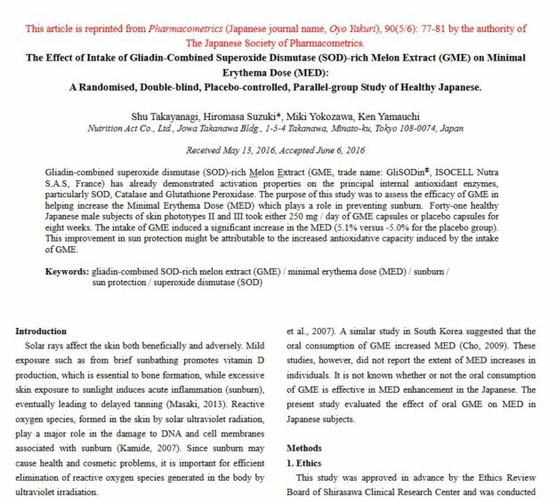 After 24 weeks, a greater improvement in VES was observed in the GPSOD group (19.85%; SE 4.63, P < 0.0001) compared with the placebo group (8.83%; SE 4.72, P = 0.0676). Tolerance was good in both groups. No related side-effect was reported. Conclusions : The use of GP-SOD appears to be a useful add-on to phototherapy in the treatment of vitiligo patients